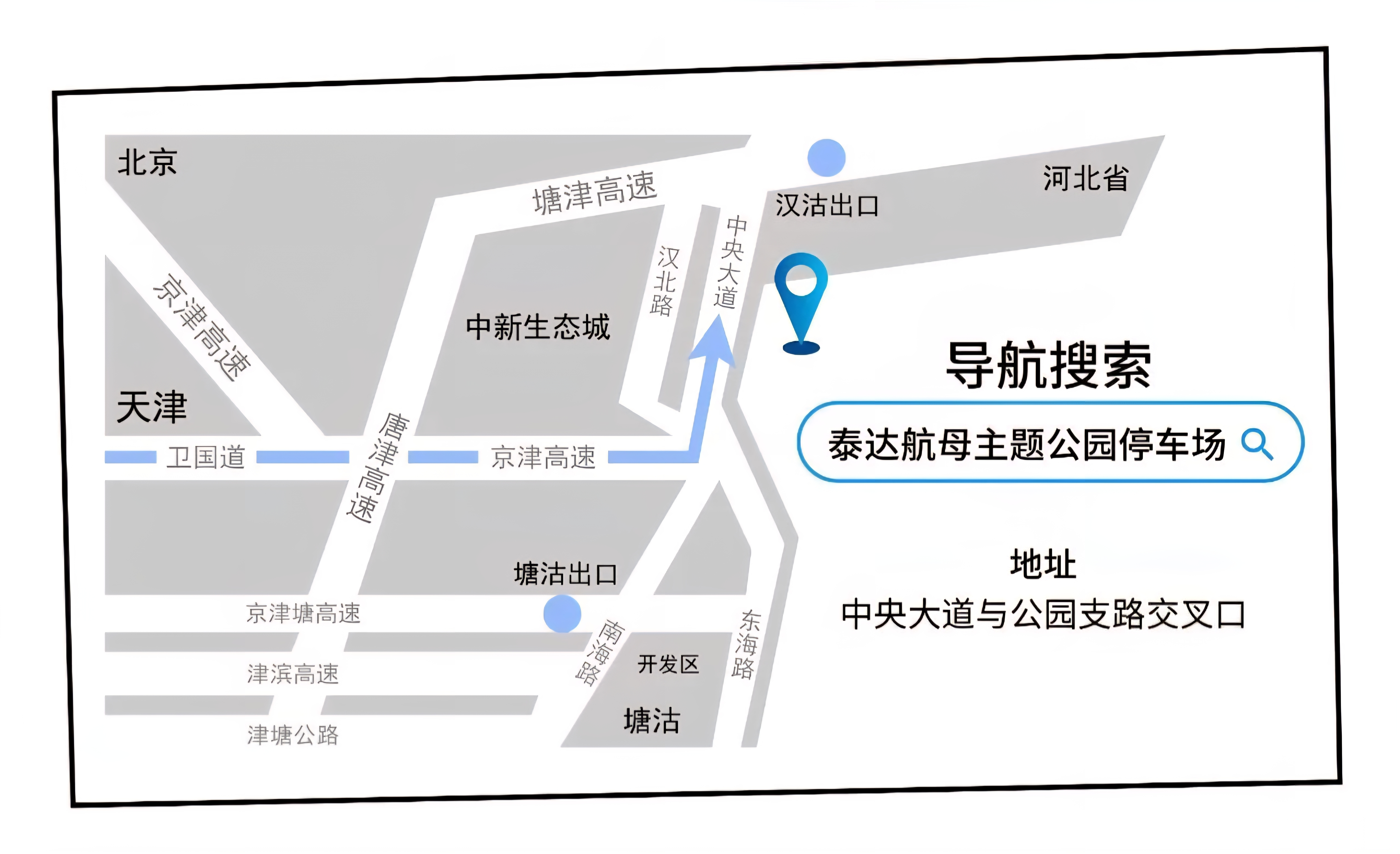 Navigate to "TEDA Aircraft Carrier Theme Park Parking Lot".