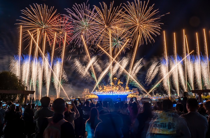 2023年,泰达航母抢抓文旅复苏大势,深入挖掘航母夜经济潜力,大力推动旅游消费提质升级,倾心打造了大型沉浸式音乐舞台焰火秀项目,开展“夜上津门·焰遇航母”夏日焰火音乐节活动,真正开启航母“白+黑”旅游新模式,促进航母游热度直线攀升,航母抖音官方号更是多次登顶抖音天津市团购带货总榜第一名、天津景点收藏榜第一名、热销榜第一名,“焰遇航母”一跃成为享誉京津冀地区优质焰火秀演出项目。中秋国庆期间,还升级打造了“国庆特别版”大型无人机焰火秀,再度掀起夜场新高潮。全年19场焰火秀演出共吸引游客22.16万人次,较疫情前2019年同期增长28%。
