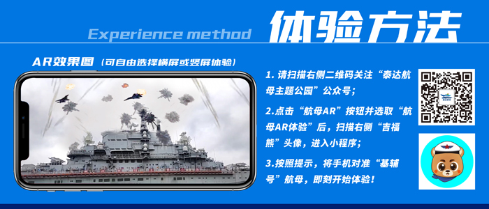 泰达航母科技感十足的AR体验项目已正式上线啦,关注泰达航母主题公园微信公众号,通过扫描游客服务中心、勋章广场前的“吉福熊”标志,启动AR互动程序,即可看到游客服务中心“科幻城堡”及“基辅号”航母战机轰炸的AR特效。